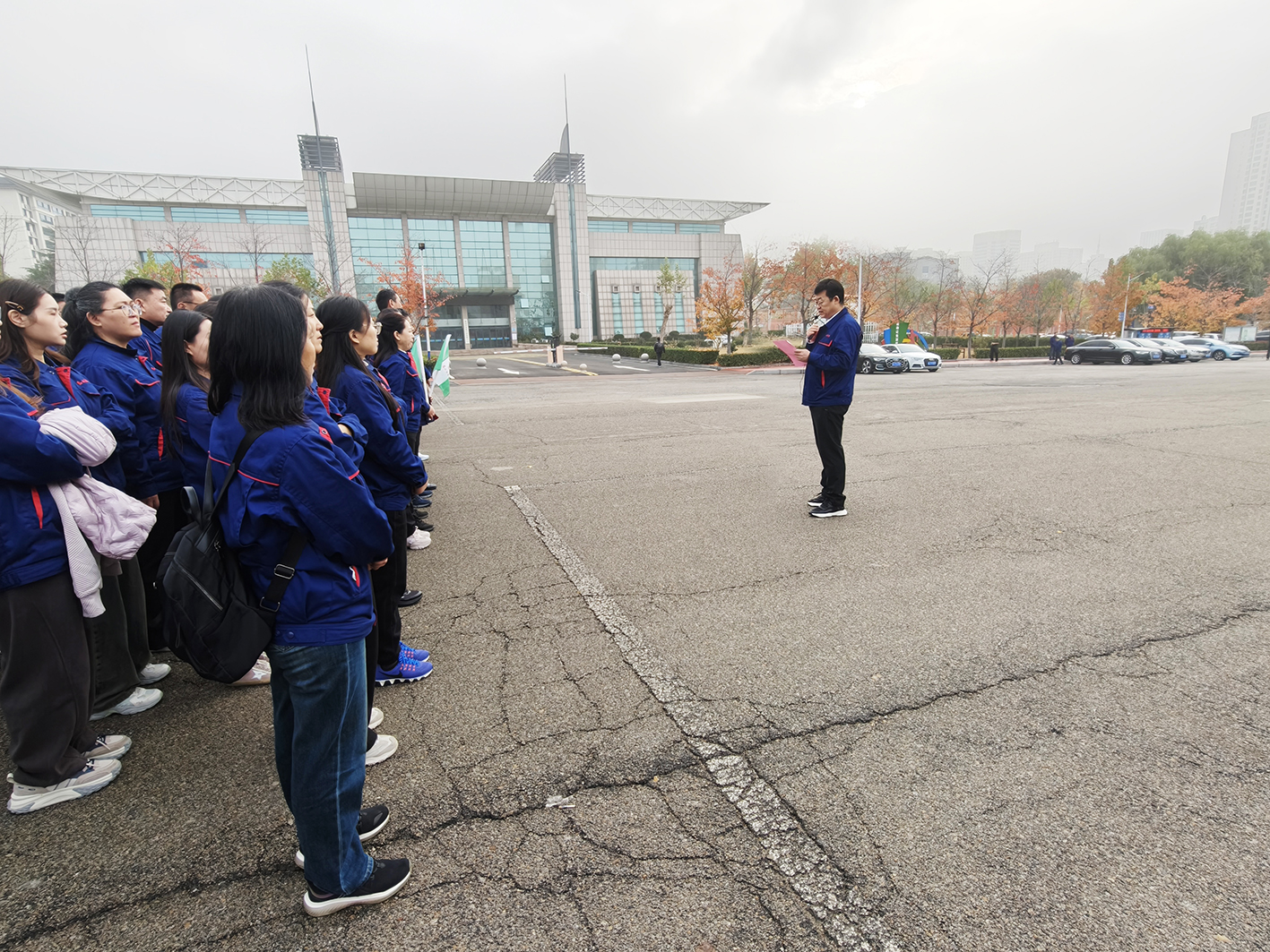 活動(dòng)伊始,同志們統(tǒng)一著裝,整齊列隊(duì),迎著初冬的朝陽(yáng),精神抖擻,集體合影留念。隨后,工會(huì)主席趙偉發(fā)表了熱情洋溢的講話。