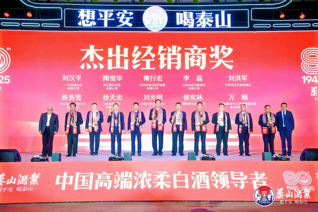 【概要描述】2025年5月9日,“穩(wěn)坐山東第一品牌,爭做中國小五糧液”泰山酒業(yè)全新品牌提升與高質(zhì)量發(fā)展大會暨泰山酒業(yè)八十周年慶典在山東泰安盛大舉行。會上,泰山酒業(yè)營銷總公司落成,同時聘任10大杰出經(jīng)銷商組成營銷顧問團,旨在與經(jīng)銷商共建營銷命運共同體,為經(jīng)銷商服務(wù),為消費者服務(wù),自此宣告泰山酒業(yè)營銷服務(wù)全面升級,廠商共生共創(chuàng),開啟中國白酒營銷新范式。