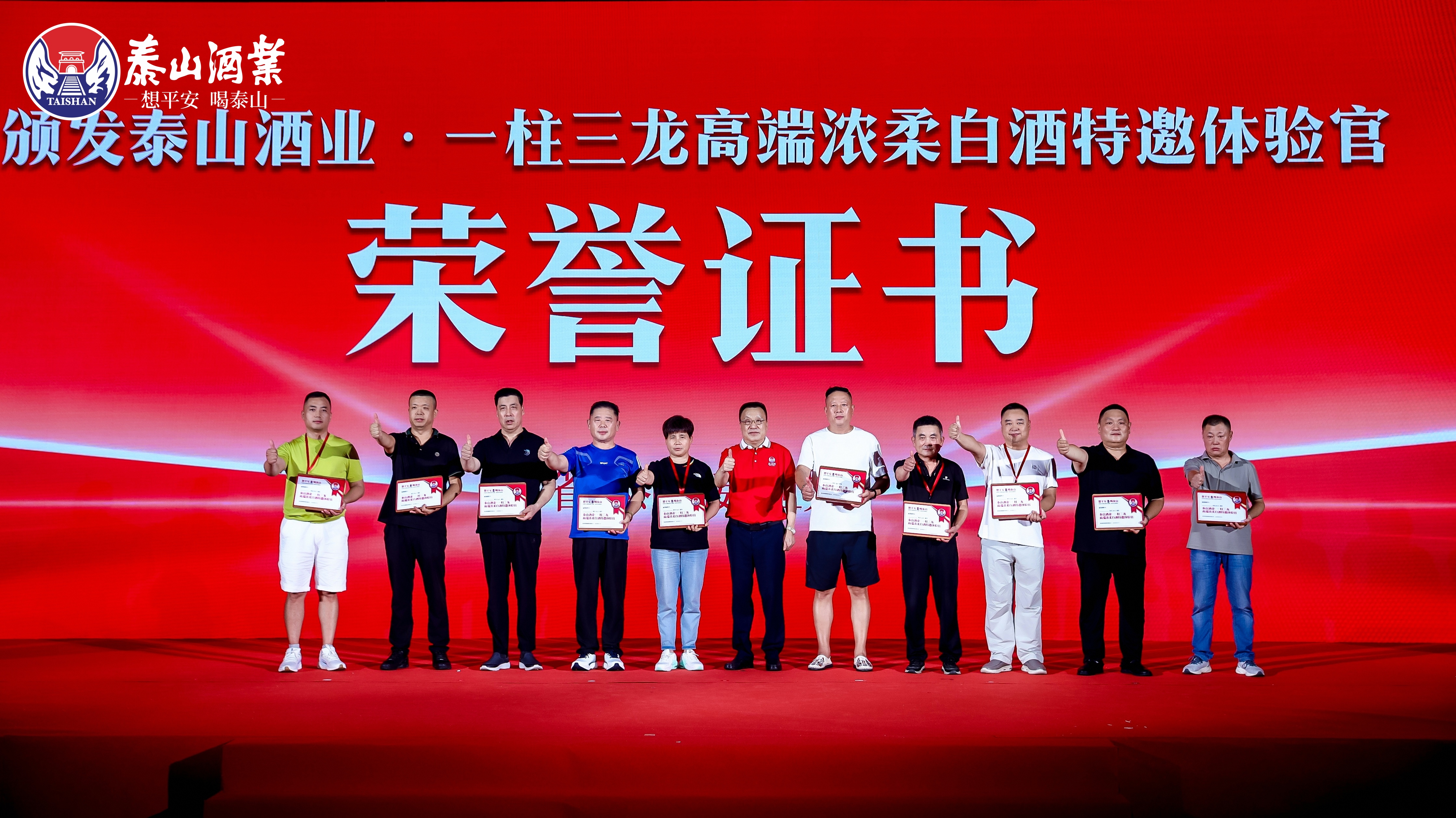 泰酒平安舞翩躚而起,平安符傳遞真摯祝福,讓賓客盡享情誼之暖。泰山酒業(yè)集團(tuán)副總經(jīng)理吳修剛以行云流水般的“五步品鑒法”傾情演繹,引領(lǐng)眾人細(xì)品泰酒“高而不烈,低而不寡,香味諧調(diào),醇厚豐滿,綿柔舒適”的濃柔風(fēng)骨,并特邀十位嘉賓深度品鑒,授予泰山酒業(yè)“一柱三龍高端濃柔特邀體驗(yàn)官”證書。特邀品鑒官紛紛表示:“真香、真柔、真順滑、不刺喉”。在品鑒宴的高潮時(shí)刻便是全體祈福儀式,將平安意境演繹得淋漓盡致,平安吉祥氛圍感染每位來賓。