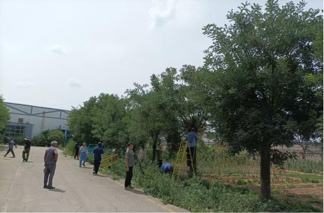在炎炎酷暑中堅(jiān)守崗位、默默耕耘的泰酒奮斗者,他們的努力是對“停產(chǎn)不停工”最好的闡釋。綜合辦輔助工序部門在停產(chǎn)后,遵循著“停產(chǎn)不停工”的精神,到原虎彩廠區(qū)進(jìn)行雜草植被、垃圾雜物的清理工作。由于該閑置區(qū)域已兩年荒廢導(dǎo)致植被雜亂,蕪蔓森森,給清理工作帶來了不小的難度。輔助工序員工不怕臟不怕累,在烈日灼灼、熱浪翻涌的高溫下,他們揮汗如雨,卻步履不停,工裝結(jié)出鹽霜仍專注如初。同時(shí)積極協(xié)調(diào)包裝中心,會(huì)同綠化班員工對釀酒基地花園及綠化帶內(nèi)的枯枝敗葉、雜草,采用暴風(fēng)機(jī)吹干凈落葉方式,使釀酒基地廠區(qū)環(huán)境整潔度顯著提升。